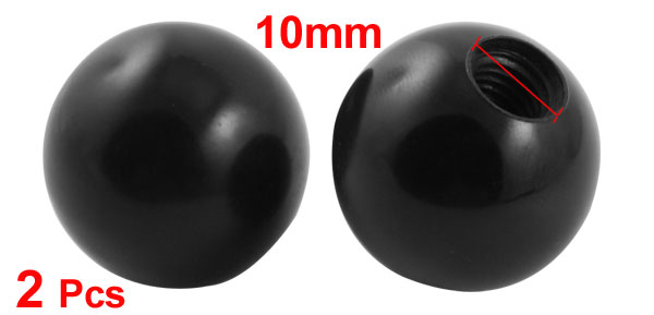 2Pcs 32mm Diameter Plastic Ball w M10 Threaded Blind Hole Handling Knob Black