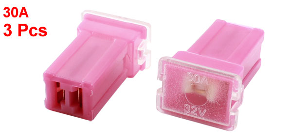 Product Name Car Fuse Rating 32V 30A Total Size 27.5 x 17.5 x 13mm/1.1" x 0.69" x 0.51"(L*W*T) Button Size 12 x 10mm / 0.47" x 0.4"(L*W) Material Electronic Parts, Metal Color Clear, Red Weight 21g Package 3 Pcs x Car Fuse - Reviews