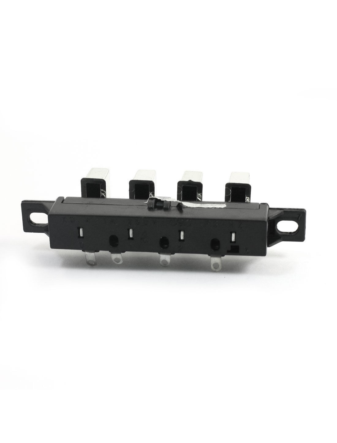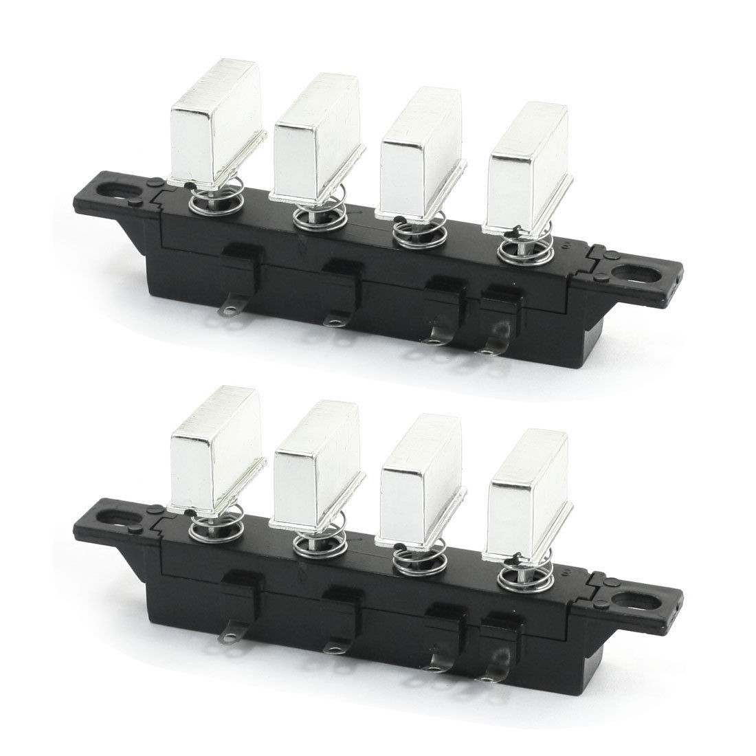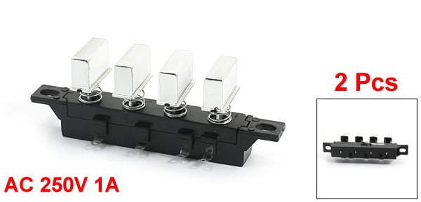 Product Name Interlock Push Button Switch Model KQ-4 Type 4 Keys 3 Poles Button Number 4 Voltage/ Current AC 250V 1A Overall Size 104 x 25 x 40mm/ 4" x 1" x 1.6" (L*W*H) Mount Hole Size 7.5 x 5mm/ 0.3" x 0.2"(L*W) Push Button Size(Each) 2.3 x 0.75cm/0.91" x 0.3" (L*W) Material Plastic, Metal, Electronic Part Color Black, Silver Tone Net Weight 57g Package Content 2 x Interlock Push Button Switch - Reviews