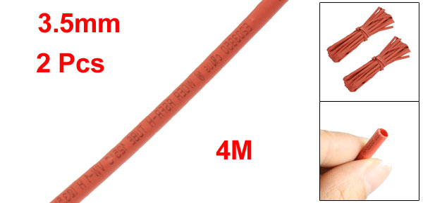 2pcs 4 Meters 3.5mm Dia Red Polyolefin Heat Shrinkable Tubing Tubes
