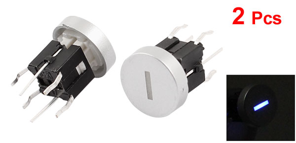 2pcs 4 Pin Momentary PCB Mount Blue LED Minus Control Tact Switch 10mm x 9mm