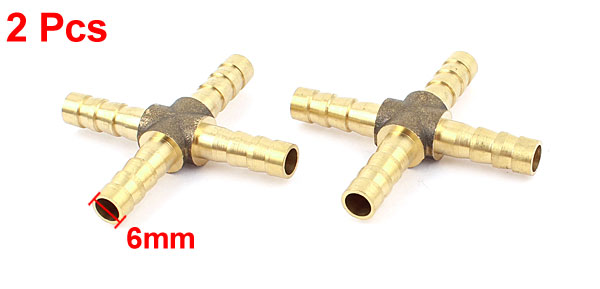 2pcs 4 Way Cross Shaped 6mm Dia Barb Hose Connector Quick Joint Fitting Coupler