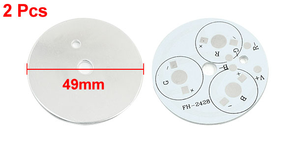 Product Name LED Aluminum PCB Circuit Board Fit for 3 x 1W/3W/5W LEDs Diameter 49mm/ 1.9" Thickness 1.5mm/0.06" Total Weight 14g Materials Aluminum Main Color White, Silver Tone Package Content 2 x LED Aluminum PCB Circuit Board - Reviews