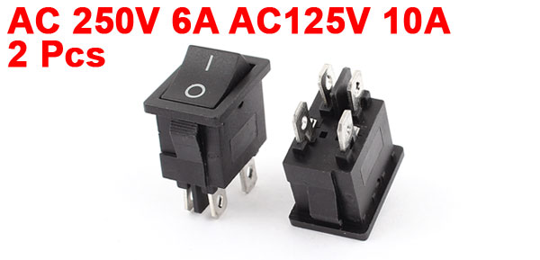 2pcs 4Pin Rocker Switch 2Position DPST AC 250V 6A AC125V 10A Panel Mount Snap-In
