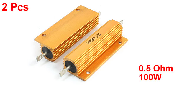 2PCS 5% 100W 0.5 Ohm Wirewound Aluminum Housed Resistor Gold Tone