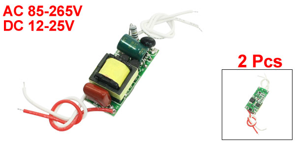 Product Name LED Driver Power Supply Fit for (5-15) x 1W LED Strip Input AC 85-265V Output DC 12-25V Size 40 x 17 x 15mm/ 1.6" x 0.7" x 0.6"(L*W*H) Weight 34g Package Content 2 x LED Driver Power Supply - Reviews