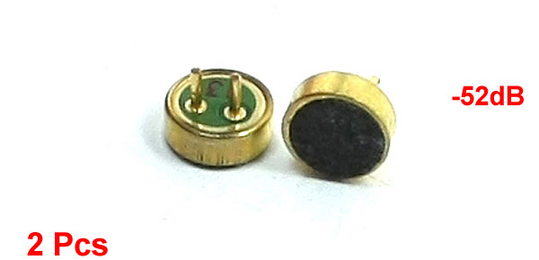 Product Name Omni-Directional Electret Condenser Microphone Sound Channel Number Stereo Output Impedence 2kOhm Frequency Response 20kHz Microphone Unit 4015 Sensitivity -52dB Body Size 4 x 1.5mm / 0.16" x 0.06" (D*T) Pin Pitch 1mm / 0.04" External Material ABS Main Color Gold Tone Weight 1g Package Content 2 x Omni-Directional Electret Condenser Microphone