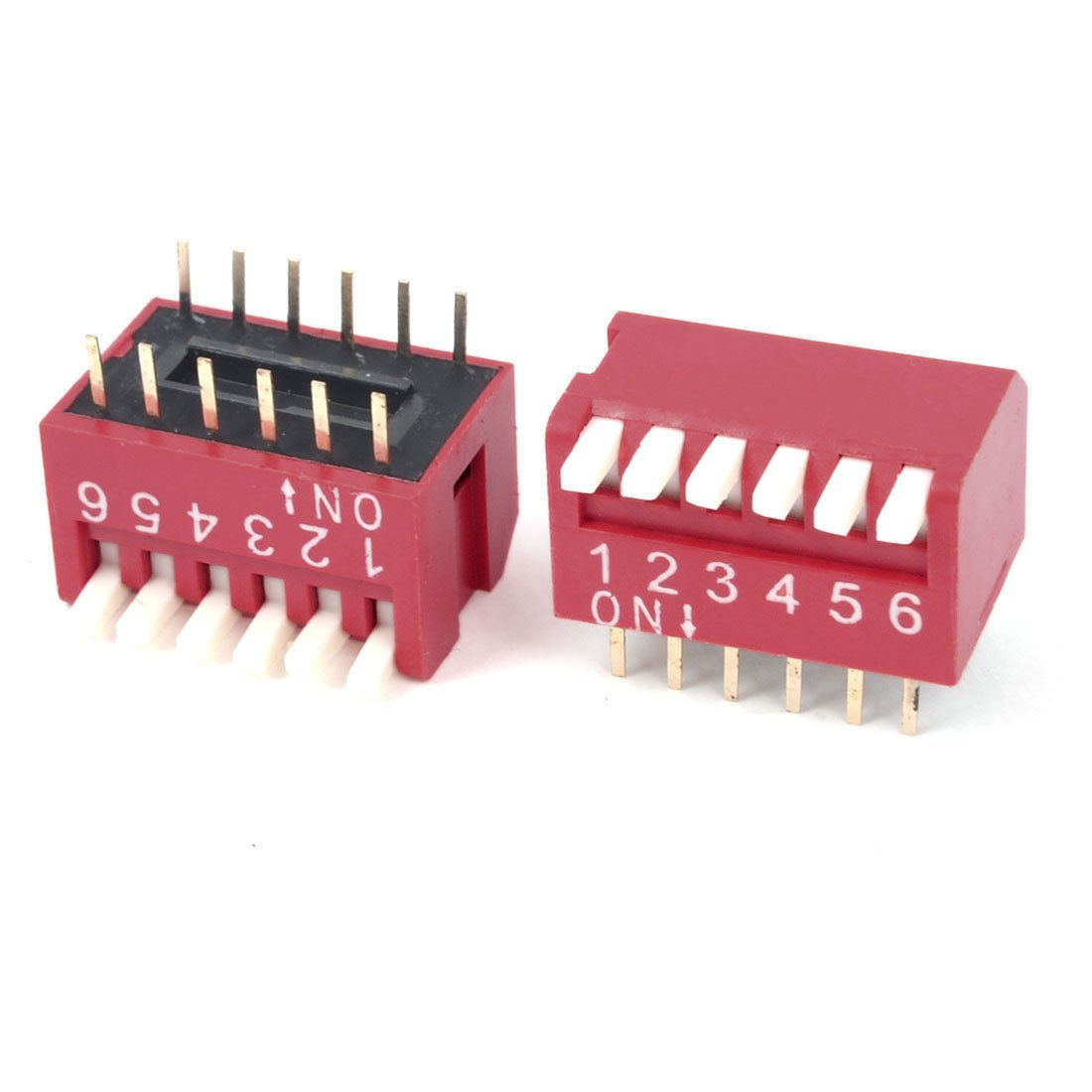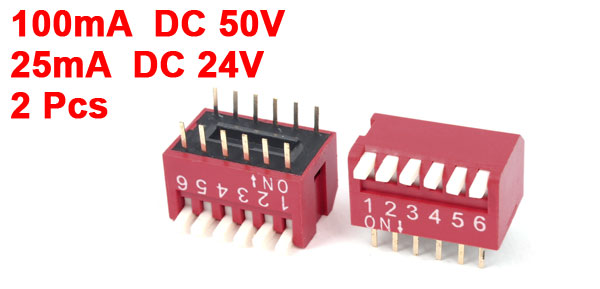 2PCS 6 Way 12 Pin 2.54mm Pitch PCB Mounted Piano Type DIL / DIP Switch Red