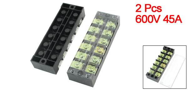 2Pcs 600V 45A Dual 6 Position Barrier Screw Terminal Block Wire Strip