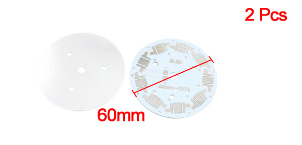 Product Name LED Aluminum PCB Circuit Board Fit for 9 x 1W/3W/5W LEDs Diameter 60mm/ 2.4" Thickness 1.5mm/0.06" Total Weight 21g Materials Aluminum Main Color White, Silver Tone Package Content 2 x LED Aluminum PCB Circuit Board - Reviews