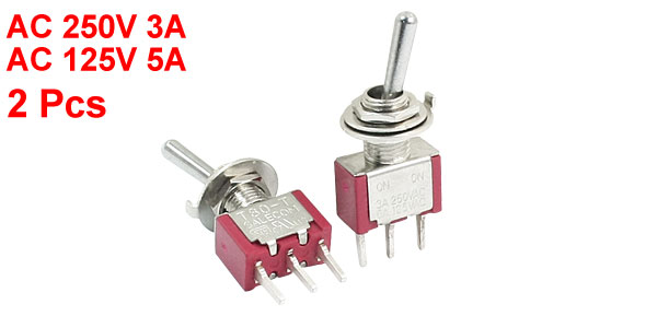 2PCS 6mm Mounting Hole Dia 2-Way SPDT Toggle Switches AC 250V/3A 125V/5A