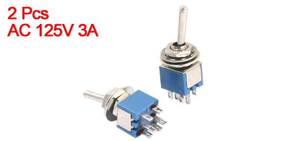 2PCS 6mm Panel Cutout Dia DPDT ON/ON Locking Toggle Switch AC 125V 3A