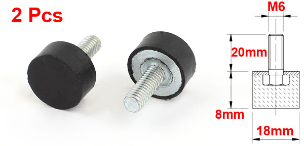Details2pcs 7/8" x 3/8" Rubber Shock Absorber Vibration Isolator Mounts M6  Product Name Rubber Vibration Isolator Mounts Material Metal, Rubber Thread Size (Approx.) M6 x 20mm(Dia.* L) Rubber Size (Approx.) 18 x 8mm / 7/8" x 3/8" (Dia.*H) Overall Height(Approx) 25mm / 1" Color Black, Silver Tone Weight 20g Package Content 2pcs x Rubber Vibration Isolator Mounts