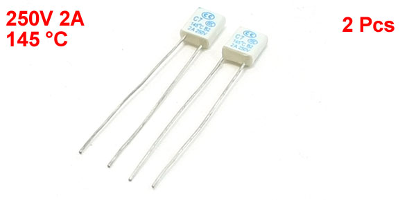 Product Name Fan Fuse Rating 250V 2A Max Temperature 145 °C Total Size 8 x 6 x 2.5mm/ 0.3" x 0.4" x 0.1"(L*W*T) Each Lead Length 3cm / 1.2" Material Electronic Parts, Metal Color Silver Tone, White Weight 3g Package 2 x Fan Fuse - Reviews