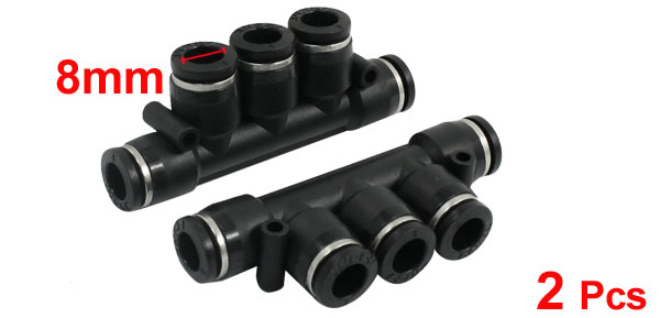 2Pcs 8mm Dia 5 Ports Push in Pipe Connector Air Pneumatic Quick Fittings