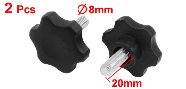 2Pcs 8mm x 40mm Male Thread Screw 32mm Dia Star Shaped Head Clamping Knob