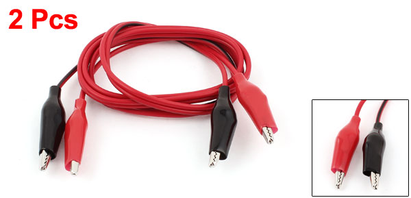 2pcs 90cm Double-Ended Dual Line Crocodile Alligator Clip Testing Wire Red Black