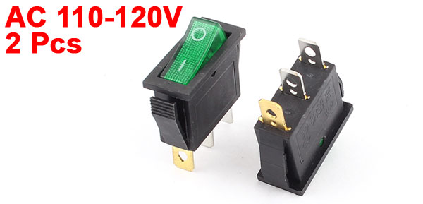 2pcs AC 110-120V Green Light Rocker Switch ON/OFF SPST Panel Mount Snap-In 3Pins