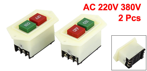 2Pcs AC 220V 380V Green On Red Off 6 Terminal Push Button Station