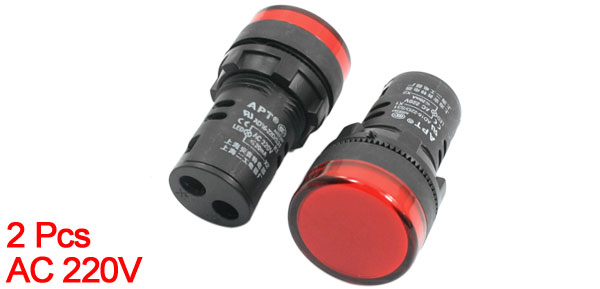 Details2Pcs AC 220V Red LED Cylindrical Signal Pilot Lamp Light  Product Name LED Signal Light Model AD16-22D/S LED Light Color Red Light Voltage AC 220V Current 20mA Size 51 x 29mm / 2" x 1.1"(L*D) Thread Dia 21mm/0.83" Wire Outlet Dia 6mm/0.24" Material Plastic, Electric Parts Color Red, Black Weight 33g Package Content 2 Pcs x LED Signal Light
