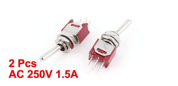 Main Color Red,Sliver Tone Brand DMiotech Terminal Number 3 Country of Manufacture CHINA Type SPDT(Latching) Material Metal, Plastic Product Name Toggle Switch Net Weight 6g Package Content 2 Pcs x Toggle Switches Position 3(ON/OFF/ON) Total Size(Not Included Terminal) 25 x 8 x 8mm/ 1" x 0.32" x 0.32"(L*W*H) Voltage Current AC 250V 1.5A Thread Size 5mm/0.2" - Reviews