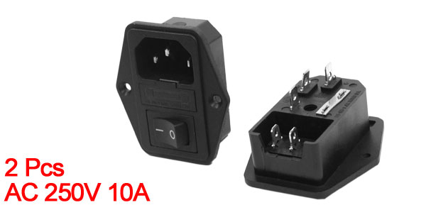 2Pcs AC 250V 10A C14 Socket Power Adapter w Black On/Off Rocker Switch