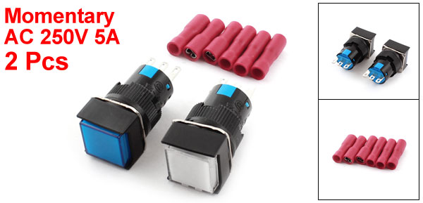 2pcs AC 250V 5A Momentary Square Push Button Switch w Female Connector