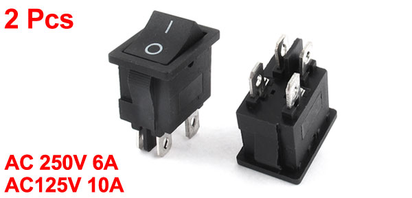 Main Color Black Brand DMiotech Country of Manufacture CHINA Action Type Latching Terminals 4 Pin Material Plastic, Metal Poles DPST Product Name Rocker Switch Net Weight 10g Package Content 2 x Rocker Switch Mounting Size 18 x 13mm/ 0.71" x 0.51"(L*W) Total Size(Each One) 20 x 16 x 15mm/0.8" x 0.6" x 0.6"(L*W*H) Rating Voltage AC 250V 6A / AC125V 10A - Reviews