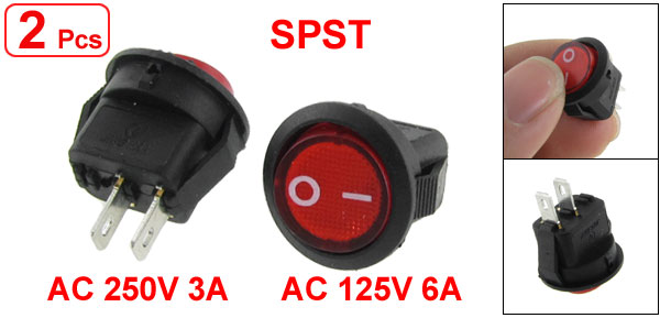 2pcs AC 3A/250V 6A/125V ON-OFF I/O SPST 2 Pin Snap in Round Boat Rocker Switch