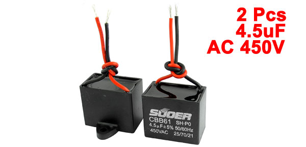 2Pcs AC 450V 4.5uF 5% Wired Connector Electric Fan Running Capacitor CBB61