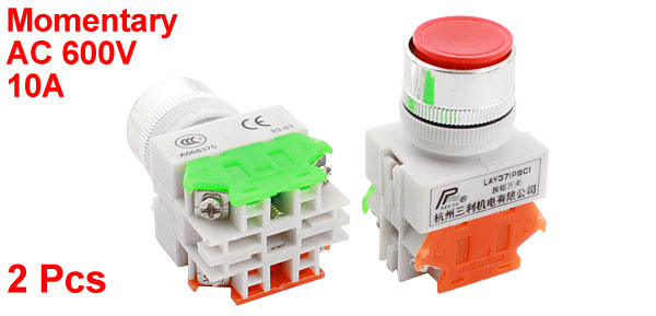 Product Name Push Button Switch Contact Type DPST(1NO 1NC) Action Type Momentary UI AC 600V Ith 10A Screws Terminal Quantity 4 Thread Diameter 24mm / 0.94" Fit Panel Max. Thickness 6mm / 0.24" Button Diameter 24mm /0.94" Total Size(Approx) 3.8 x 3 x 6.3cm /1.5" x 1.2" x 2.4"(L*W*H) External Material Plastic, Metal Button Color Red, White Net Weigth 70g Package Content 2Pcs x Push Button Switch - Reviews