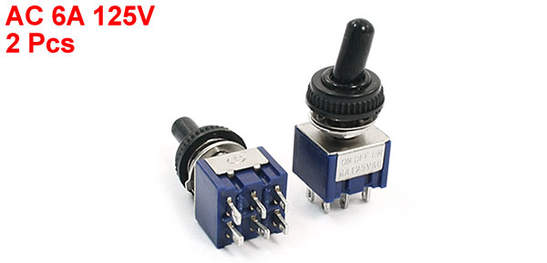 Product Name Toggle Switch Rating AC 6A 125V Pin Number 6 Pins Position 3 Position(On/Off/On) Type DPDT (Latching) Screw Diameter 6mm Total Size(Approx.) 1.3 x 1.3 x 3.2cm /0.5" x 0.5" x 1.3"(L*W*T) Material Metal, Plastic Color Blue, Silver Tone Weight 12g Package Content 2 x Toggle Switch - Reviews