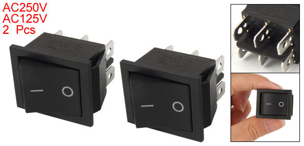 Item Name Rocker Switch Type On/ On (DPDT) Voltage & Current AC250V, 6A AC125V, 10A Overall Size ~3.1 x 2.5 x 3.5cm / 1.2" x 0.98" x 1.4"(L*W*H) Color Black Material Plastic & Metal Total Net Weight 26g Package Content 2 x Rocker Switch - Reviews