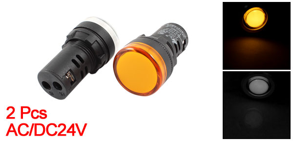 2Pcs AC/DC24V Energy Saving Yellow White LED Indicator Pilot Signal Light Lamp
