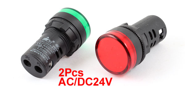 2Pcs AC/DC24V Red Green LED Indicator Pilot Signal Light Lamp 22mm Panel Mount
