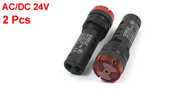 2PCS AC/DC24V Red LED Telecommunications Signal Pilot Light w Buzzer