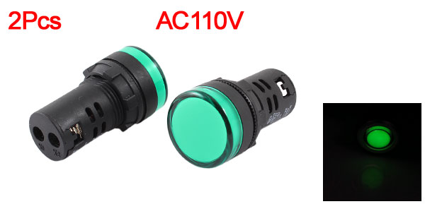 2Pcs AC110V Green LED Power Indicator Pilot Signal Light Lamp 22mm Panel Mount