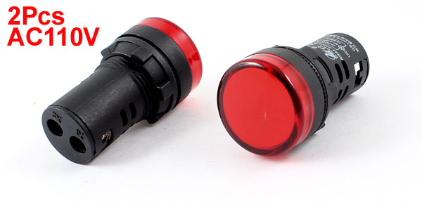 2Pcs AC110V Red LED Power Indicator Pilot Signal Light Lamp 22mm Panel Mount