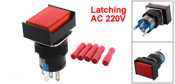 Item Name Rectangle Head Push Button Switch w Crimp Connector Model CB16A Contact Type SPDT(1NO 1NC) Action Type Latching Pin Number 5 Voltage, Current AC 250V 3A