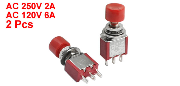 2PCS AC250V 2A 120V 6A 6mm Panel Mount Dia SPDT Momentary Red Toggle Switch