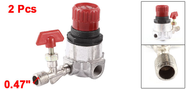 Product Name Air Compressor Valve Switch Design Single Outlet Material Plastic, Metal Color Red, Silver Tone Male Thread Diameter 12mm/ 0.47" Female Thread Diameter Big:11mm/0.43", 9mm/0.35" Valve Total Size 8.2 x 4.2 x 7.3cm / 3.2" x 1.7" x 2.9" (L*W*H) Weight 216g Package Content 2 x Air Compressor Valve Switch - Reviews