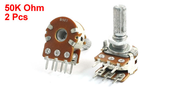 Product Name Dual Potentiometer Resistance Value 50K ohm Adjustment Type Top Adjustment Type Single Linear (Type B) Features Knurled Shaft Shaft Diameter 6mm / 0.2" Shaft Length 13mm / 0.51" Mounting Thread Diameter 7mm / 0.3" Base Size 18 x 9.4mm / 0.71" x 0.37"(D*H) Total Height 31mm/1.2" Material Metal, Electronic Parts Net Weight 17g Package 2 x Dual Potentiometer - Reviews