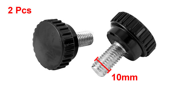 2pcs Black 10mm Thread Diameter 38mm Height Knurled Grip Knobs