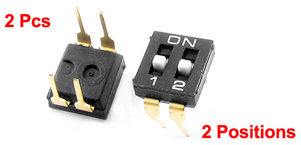 Product Name DIP Switch Type IC Type Features 2 Positions( 2 Row 4 Pin) Pitch 2.54 mm / 0.1" Non-Switching Rating 100mA DC 50V Switching Rating 100mA DC 24V Each Size 8 x 6 x 8mm / 0.31" x 0.24" x 0.31" (L*W*H) Main Material Plastic, Metal Color Gold Tone, White, Black Net Weight 2g Package Content 2 x DIP Switch - Reviews