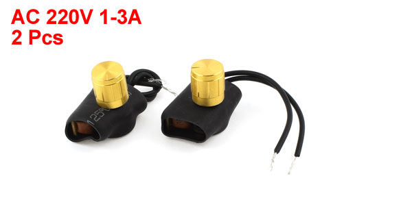 2Pcs Black 2-Wires Gold Tone Rotary Knob Dimmer Switch AC220V 1-3A