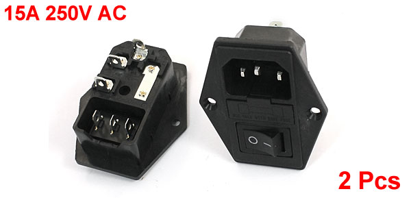 Details2Pcs Black 3 Pin SPDT Rocker Switch Fuse Holder IEC320 C14 Inlet Power Socket  Product Name Power Socket Plug Type IEC320 C14 Voltage & Current 15A 250V AC Button Color Black Rocker Switch Type 3Pin SPDT Fit Fuse Size 5 x 20mm/ 0.2" x 0.79" (L*W) Total Socket Size 5.8 x 4.8 x 3.3cm/2.3" x 1.9" x 1.3"(L*W*T) Mount Size 4.8 x 2.7cm/1.9" x 1"(L*W) Material (External) Plastic, Metal Main Color Silver Tone, Black Weight 52g Package Content 2 x Power Socket w Fuse Holder w Rocker Switch