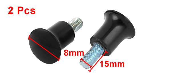 2Pcs Black 8 x 15mm Male Thread 25mm Diameter Head Clamping Round Knobs