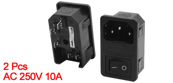 2Pcs Black Boat Switch Fuse Holder C14 Inlet Power Adapter AC 250V 10A