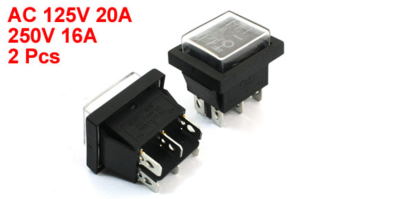 Product Name Waterproof Rocker Switch Connection Type DPDT Terminals Number 6 Positions Number 3(I/O/II) Voltage/Current AC 125V/20A 250V/16A Total Size(Each) 35 x 30 x 36mm/ 1.4" x 1.2" x 1.4"(L*W*H) Mounted Size 30 x 21mm/ 1.2" x 0.83"(L*W) Switch Color Black Button Color Black Material Plastic, Metal Weight 35g Package Content 2 x Waterproof Rocker Switches - Reviews