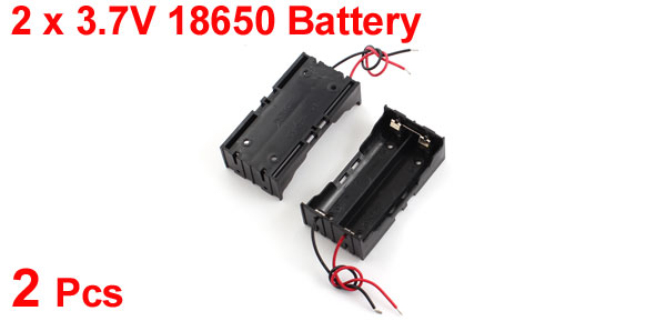 2Pcs Black Plastic 2-Slot 2-Wired Holder Box for 2x3.7V 18650 Battery